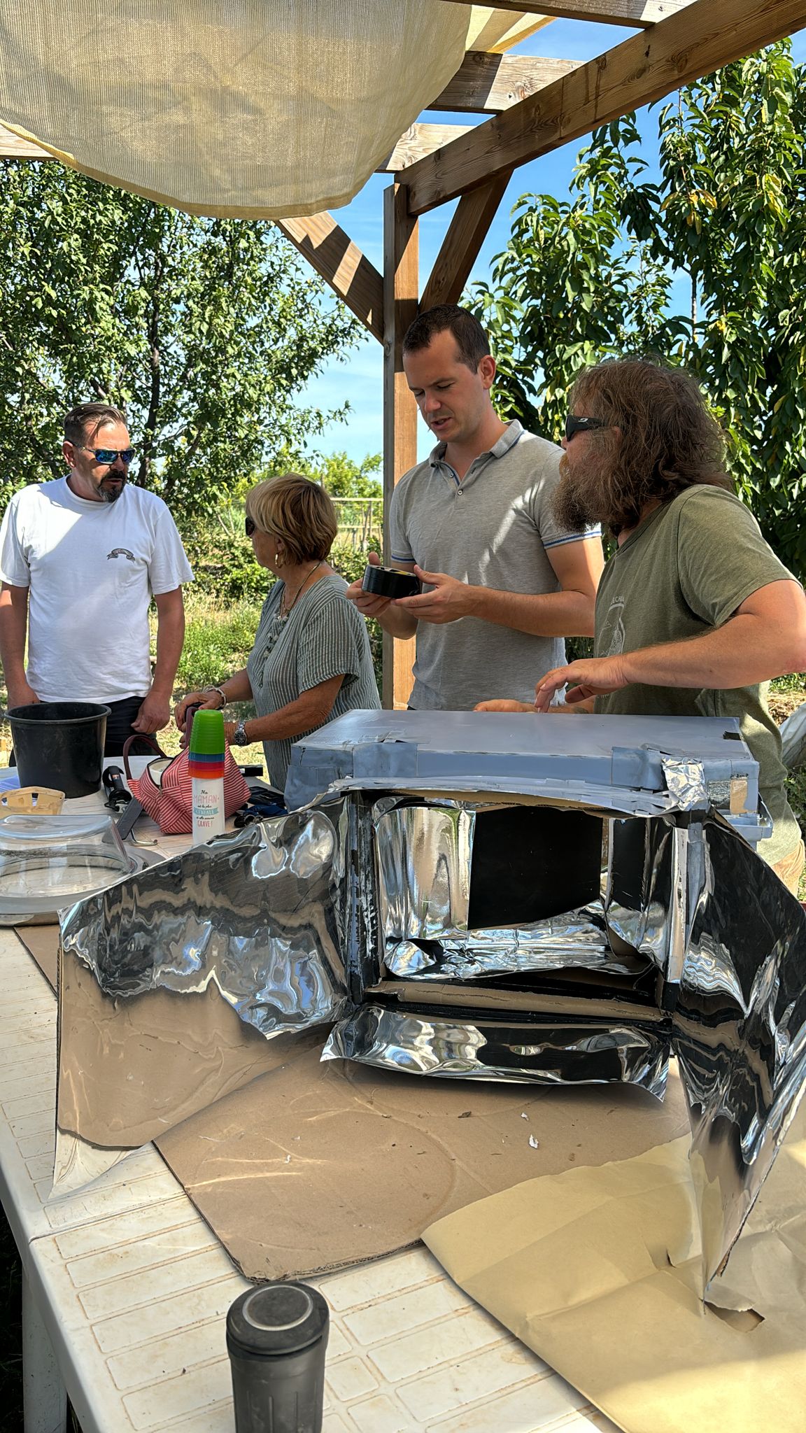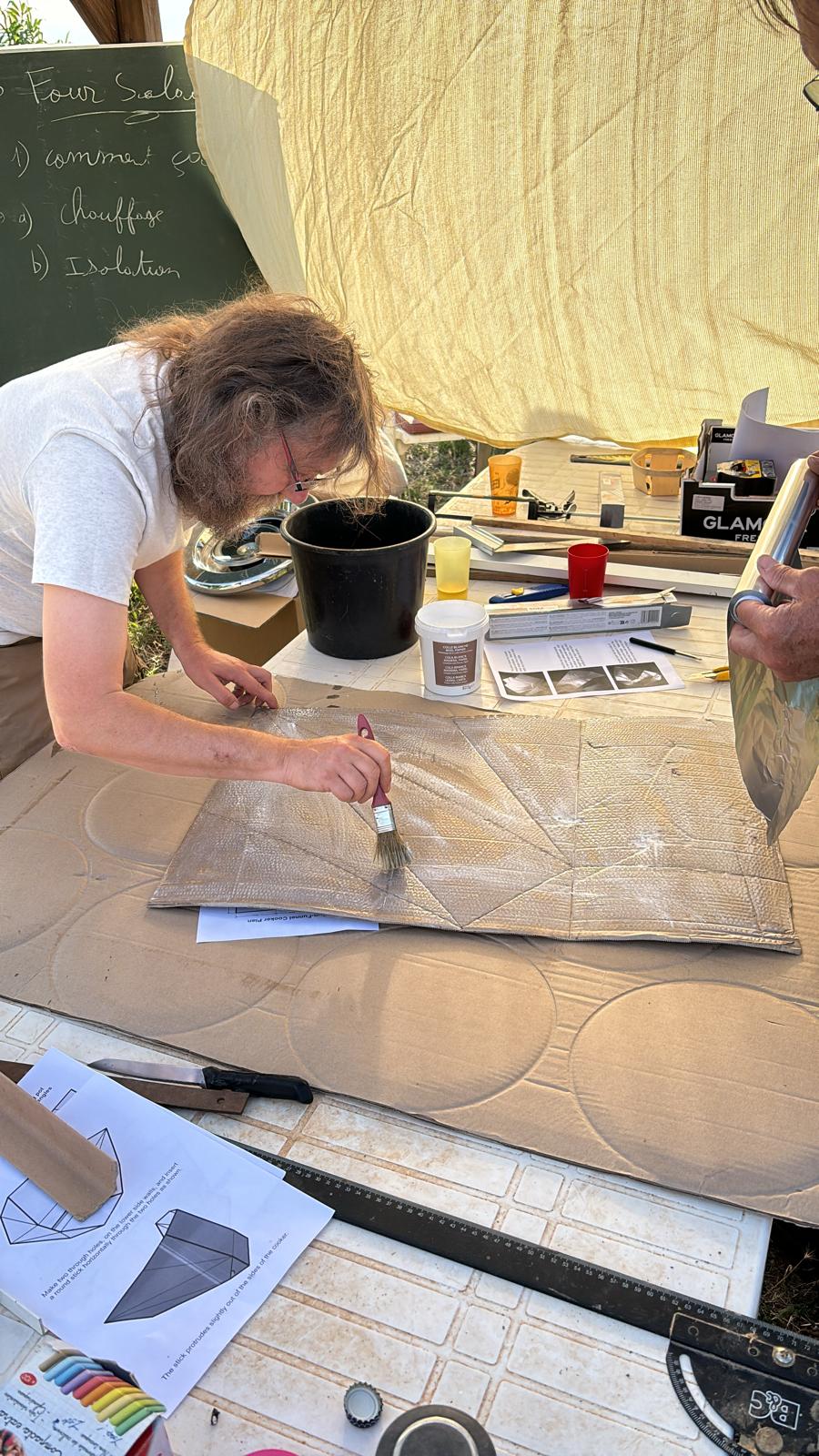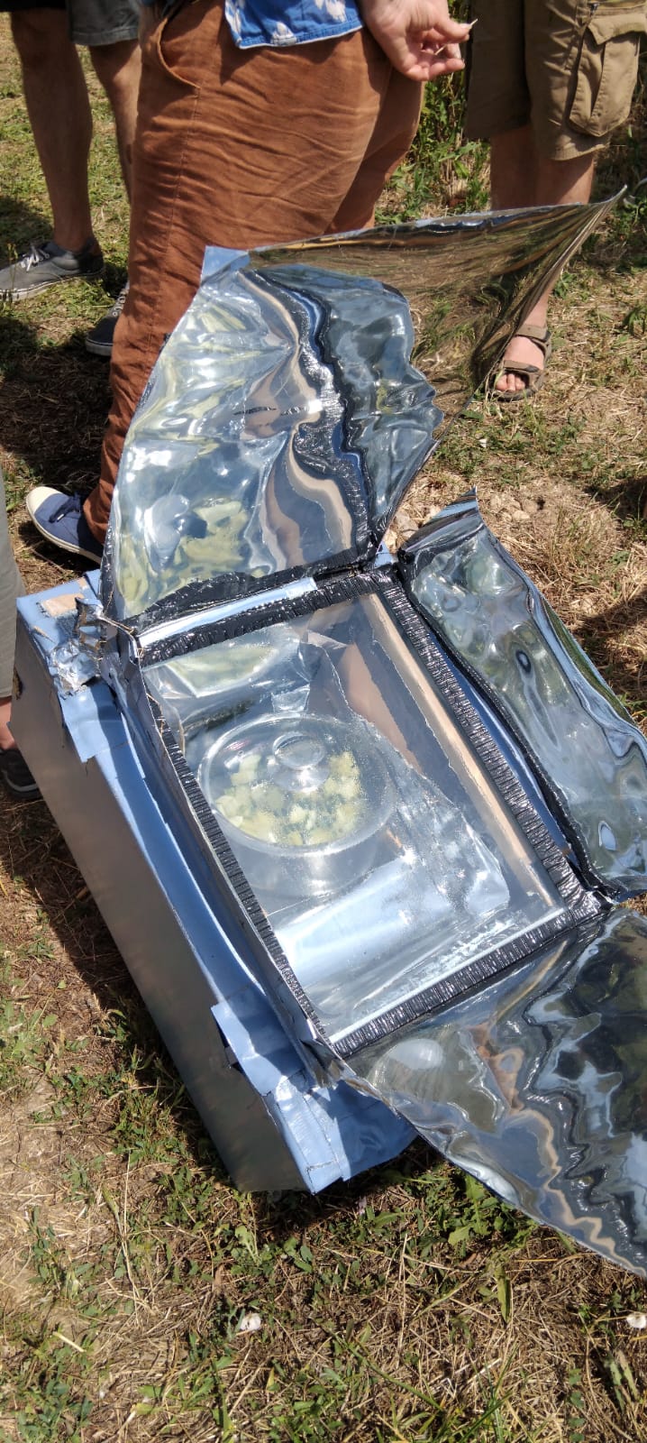Samedi 13 et dimanche 14 juillet 2024, Frédéric Topin a encadré la construction d’un four solaire à partir de matériaux de récupération.